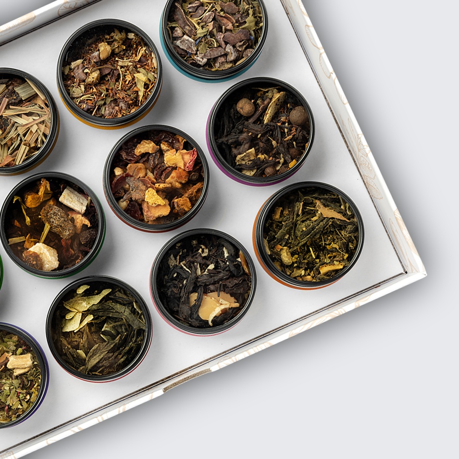 Discover your favourite of our 12 premium loose-leaf tea blends with gelmoment's NEW tea time sampler box. Our teas are all made from ingredients that we proudly source from women-owned farms around the world. Plus, our delicious blends are free of GMOs and infused with biotin, making them an eco-friendly beverage that also helps nourish your skin, nails, and hair.